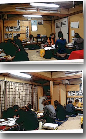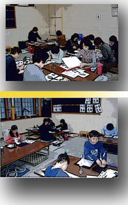 | ●成人教室 翠光会では初心者の方には筆の持ち方、墨のすり方から丁寧に指導いたします 効果的なテキスト(毛筆・ペン・ボールペン・鉛筆)により基本筆法をマスターし日本書道団体の毎月の競書に応募します。 文部科学省認定を取得するとともに実用書道(地名・人名)を学びます。 |
